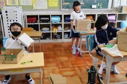 34年生 図画工作「ここにいたい 段ボール制作」で、お気に入りの人形の家づくりを行っていました。
