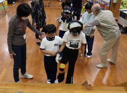 階段を上ったり、細かな字を読んだり、自動販売機にお金を入れたりする体験では、思うように体を動かすことができない、ということを実感することができました。