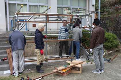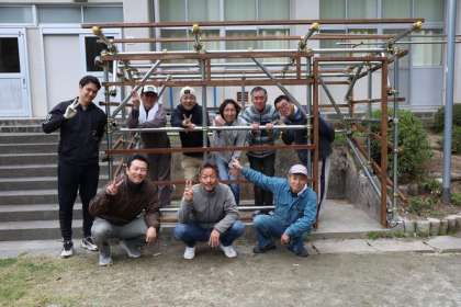 ウコッケイ飼育小屋改修 公開日 2023/11/14 更新日 2023/11/14 地域学校共働本部 ウコッケイの成長に伴い、現存の小屋では狭くなってきました。そこで、古い飼育小屋を改修することになりました。 子どもたちが安全に飼育できるようにと、環境支援ボランティアのみなさんにご協力いただき、小屋の設計図をもとにして、骨組みが完成しました。 同時に、ヤギットパーク柵のペンキ塗り作業も行いました。 ボランティアのみなさん、ありがとうございました。