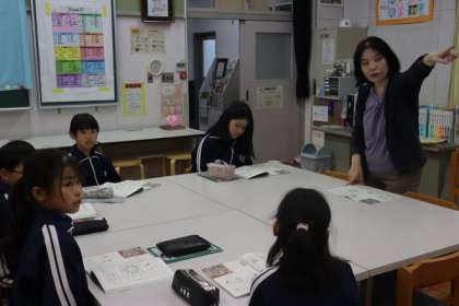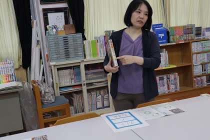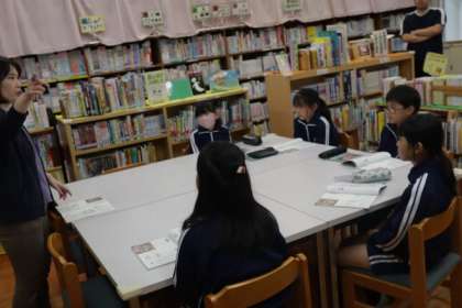 5月13日(月)4年生の国語「図書館へ行こう」の学習で、本の分類について、司書さんに教えていただきました。