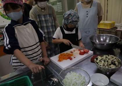 高学年が、野菜をサイコロ状に切りそろえ、煮込んでいきました。