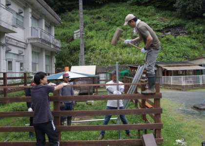 設計図をもとにしながら、ボランティアのみなさんが手際よく資材を組み合わせていきました。