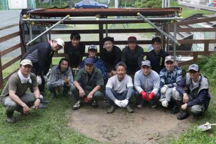 6月30日(日)地域学校共働本部のみなさんにご協力いただき、ヤギっとパークの日除けとエサ台の新築作業を行いました。