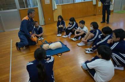 11月13日(水)、足助消防署の方に来ていただき、56年生対象に「応急手当講習会」を行いました。