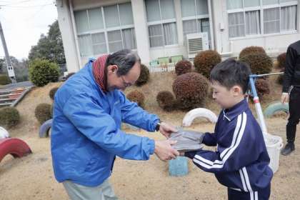 2月3日(月)、「ぐ〜んベジ」を今年度も西山公園でも活用してもらおうと、西山公園の方に来ていただき、一人一袋ずつ「ぜひ使ってください」と、お渡ししました。