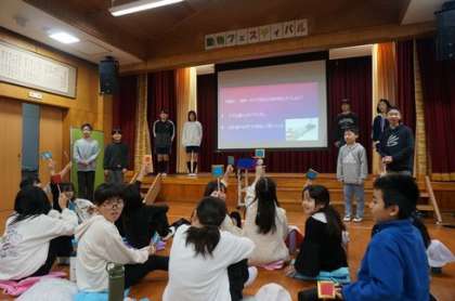 動物フェスティバル その2 公開日 2025/02/15 更新日 2025/02/15 お知らせ 4年生では、ウコッケイが健康で安全に過ごすために、どんなことに気を付けて飼育すればよいのか、ウコッケイに変身し、5つの劇にまとめて発表しました。 5.6年生では、佐切堆肥「ぐ〜んベジ」を広めるために、会社経営で取り組んできたことや今後の課題をパワーポイントを使って分かりやすく発表しました。 各学年の発表後は、保護者や他学年からも感想が出され、積極的な感想交流となりました。