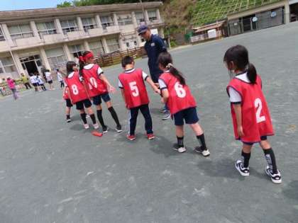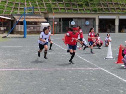 後半は、赤白各チームに分かれ、高学年が中心となってバトンパスの練習をしました。