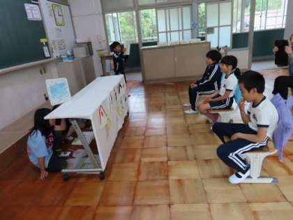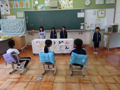 「風のゆうびんやさん」音読劇 公開日 2025/05/02 更新日 2025/05/02 お知らせ 5月2日(金)「風のゆうびんやさん」の音読劇の発表をしました。 2年生では、国語「風のゆうびんやさん」の学習をする中で、「音読劇にして見せたい」と、音読を意欲的に頑張ってきました。 1年生とひまわり学級のお友達に見せるために、登場人物になりきってせりふが言えるように、この日に向けて練習を重ねてきました。 本番では、練習の成果をしっかり発揮することができました。