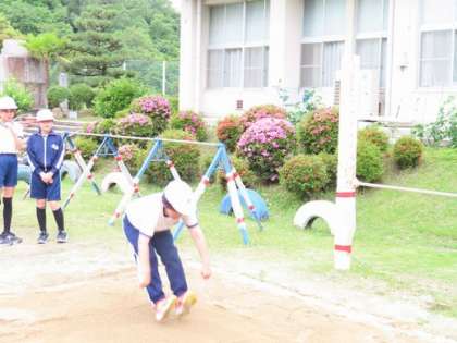 体力テスト 公開日 2025/06/12 更新日 2025/06/12 お知らせ 6月12日(木)、50メートル走、立ち幅跳び、ソフトボール投げの体力テストを行いました。 子どもたちは本番に向け、昨年度より記録を上げようと、ボールの投げ方や跳び方のコツを教えてもらい、練習に取り組んでいました。 本番では、どの子も真剣に取り組んでいました。 昨年度よりも記録が伸びたかな。 今後も、進んで運動に取り組もうとする意欲を高めていけるといいですね。