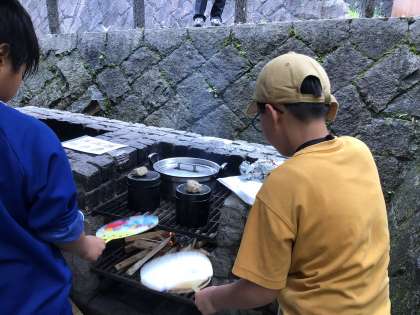 いよいよご飯を炊き、カレーを煮ます。 美味しくできますように