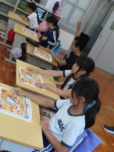 5・6年生では、映像の子どもが話す内容を聞き取り、日本との食事や文化の違いを見つけていました。