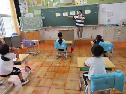 歌やゲームを通して、楽しく外国語を学んでいます。