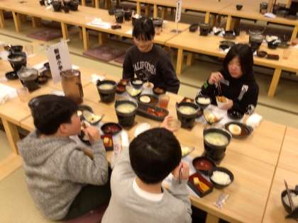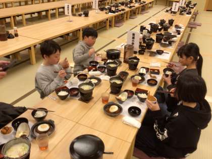 絵付け体験を終え、佐切小だけでゆっくり夕食を食べました。 この後、入浴と1日の振り返りをします。