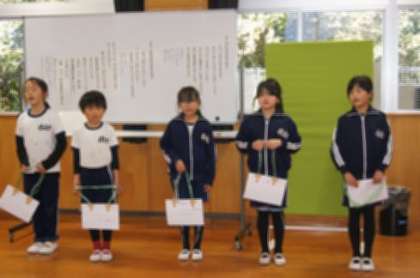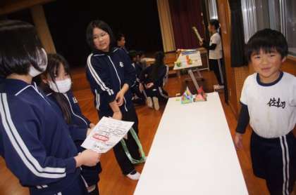 児童集会(1・2年生発表) 公開日 2025/12/18 更新日 2025/12/18 お知らせ 12月18日(木)、児童集会で1・2年生発表でした。 生活科で作った手作りおもちゃを、それぞれのブースに分かれて遊び方を説明していました。 縦割りグループになり、1・2年生のおもちゃブースを楽しく体験していました。 22日までは、1・2年生教室で体験できるので遊びに行ってみましょう。