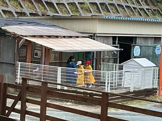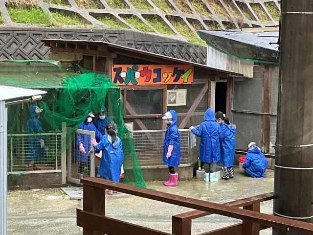 今日は、朝からあいにくの雨ですが子どもたちは飼育活動に励んでいます。新しいカッパを着て活動しました。ヤギのララさんは雨が苦手らしくヤギットパークには出てきません。