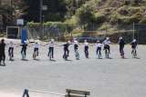 5・6年生が体育の学習で、運動会種目の一輪車演技の風車にチャレンジしていました...