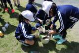 3・4年生が、牛乳パックを種まき用のポット代わりに利用して、つるれいしの種まき...