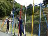 ジャングルジムとブランコ前で説明しました。特に、ブランコについては、周囲に赤白...