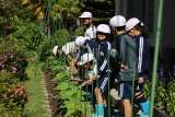 3・4年生が総合的な学習で、若い3羽(ミント・キラリ・キララ)の小屋の外での行...