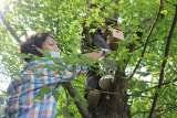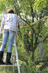 1年の設置場所の木が、一番大変でした。足をかける枝がなく、脚立では高さが低かっ...