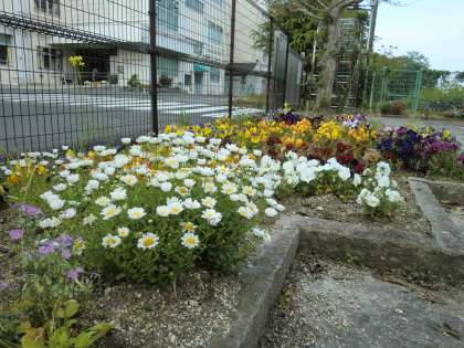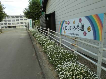 正門の「なかよし小道」南門の「にじいろ花壇」で花を栽培することで、自然の美しさや四季を感じることで子どもたちの情操教育になると考えます。