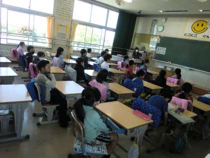 子どもたちは、しっかりと教室で放送に聞き入っていました。