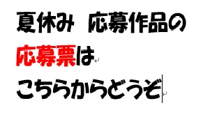 夏休み 応募作品 について 公開日 2021/07/20 更新日 2021/07/20 お知らせ 1 水道下水道ポスター応募票 3 赤い羽根協賛児童作品コンクール応募票 4 明るい選挙啓発ポスター応募票 6 JA わたしの好きな農作物応募票 8 交通安全作品応募票 9 ふるさとの田んぼと水 応募票