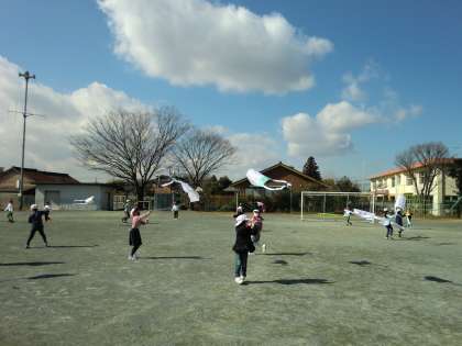 晴天に恵まれ、1年生の子どもたちがたこあげを楽しみました。