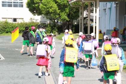 5月2日(月)、朝の登校時にあいさつ運動が行われました。6年生が登校する児童に対し、明るく、元気な声で「おはようございます」と声をかけていました。3連休明けの授業日となった今日ですが、6年生の積極的なあいさつのおかげで、「今日一日頑張ろう」と勇気づけられた児童もいたことと思います。あいさつ運動に参加した6年生の児童及び、保護者の皆様、ご協力ありがとうございました。