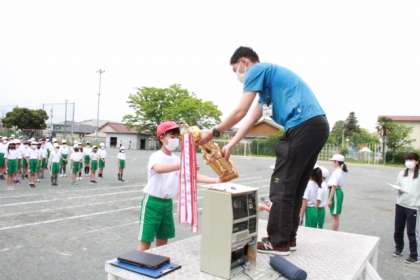 5月2日より運動会練習はスタートしていますが、その運動会もいよいよ今週末に迫ってきました。6年生を中心に緊張感のある中で、閉会式の練習を全校で行いました。運動会へのやる気をどの児童も感じられるような全体練習となりました。