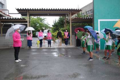 6月6日にPTA成人育成委員会による、あいさつ運動が行われました。あいにくの雨の中元気いっぱいにあいさつをする子どもたちでした。