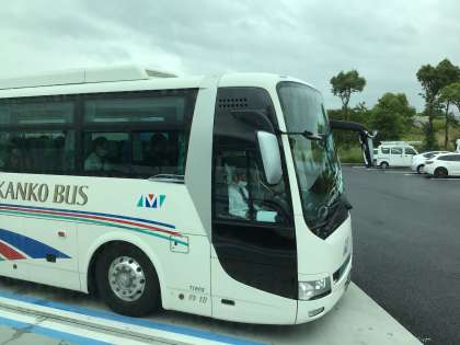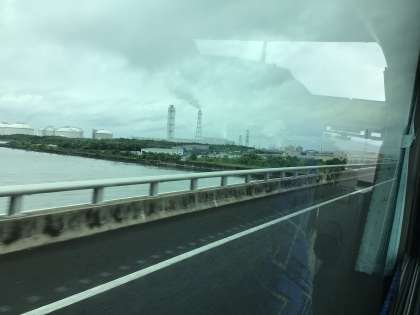 四郷小学校を出発して、湾岸長島PAで休憩をとりました。雨もあがり、予定通りの時間で進んでいます。