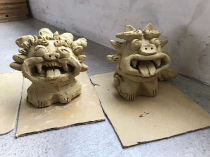 6年1組が講師を招いて、焼き物体験教室をしました。ひんやりとした粘土を両手でこねながら、愛嬌のある表情のシーサーを作りました。明日は、6年2組が体験します。