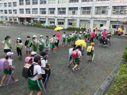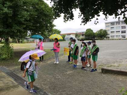 PTAの方が早朝より準備してくださり、あいさつ運動が行われました。6年生の子どもたちもあいさつ運動のたすきをかけて、爽やかな声であいさつをしていました。空は雨模様でしたが、気持ちの良いあいさつをしたあとの子どもたちの表情は、晴れやかになっていました。