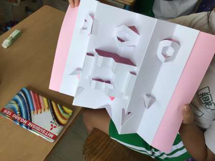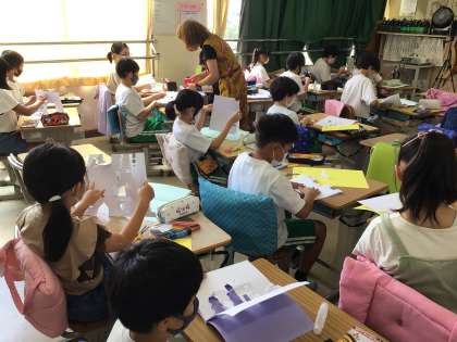 9月6日と7日に4年生が講師を迎えて、飛び出すカード作りをしました。こうむらゆきな先生が教えてくださる様々な飛び出す仕掛けに、子どもたちは目を輝かせながら説明を聞いて一生懸命に作りました。画用紙を切って、折って、貼ることを繰り返し、素敵なカードを作りました。