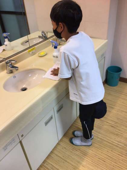 清掃の様子です。いつもとはちがう清掃場所でしたが、静かに率先して取り組むことができました。