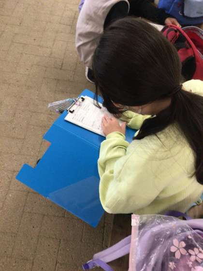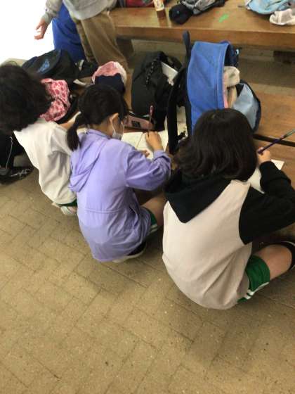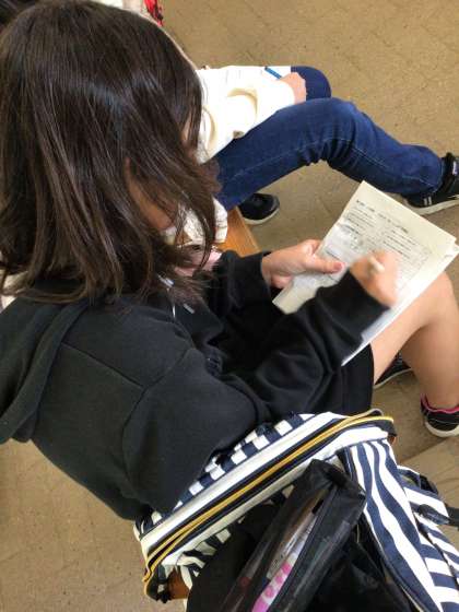 クラフト体験が早く終わったため、しおりに今日の振り返りを書き込んでいます。