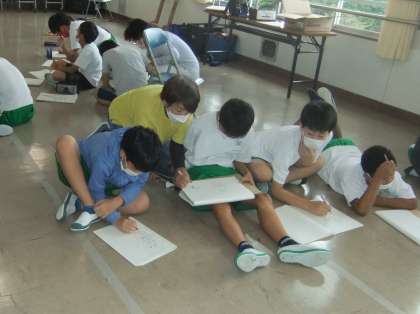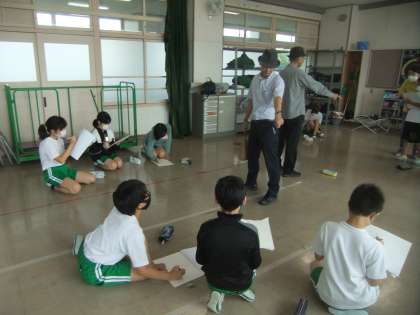 6年生は、読書感想画を描くために、人物のデッサンを行いました。モデルは、校長先生、担任、地域ボランティアの方々に務めていただきました。どの子も上手に特徴を捉えデッサンを描き上げていました。