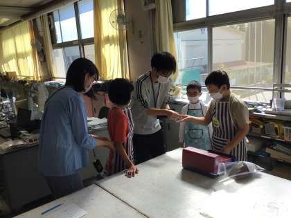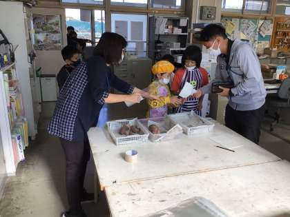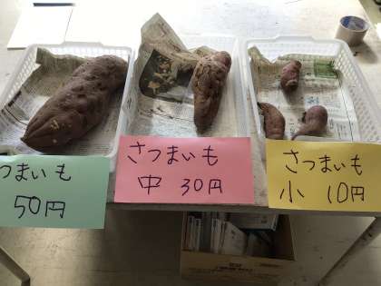 特別支援学級の子どもたちが職員室でスマイルスーパーを開店しました。学級園で育てたサツマイモを売りました。たくさんあつたサツマイモは、10分で完売しました。明日もメンバーを交代して、スマイルスーパーを開店するそうです。