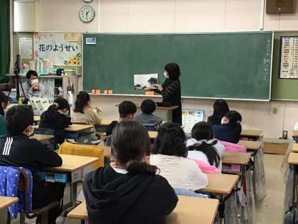 読み聞かせボランティア 公開日 2022/11/17 更新日 2022/11/17 特色ある学校づくり推進事業 今日は、ボランティアグループのみなさんによる読み聞かせがありました。今夜の獅子座流星群にちなんだ絵本を選んでくださる方がいたり、絵本を使わず一人芝居のようにお話しされる方もいたり、子どもたちは食い入るように聞いていました。今夜は、流れ星が見えるでしょうか。