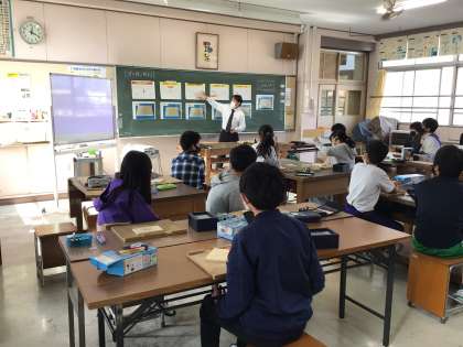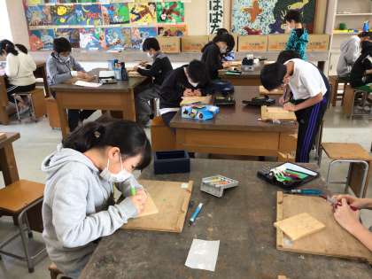 6年生が図画工作の授業で、講師を招いて卒業制作の作品に取り掛かりました。彫刻刀を安全に使って、立体感が強調される彫り方に挑戦します。さて、どのように仕上がるのでしょうか。