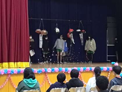 5年生が6年生のために考えた寸劇やクイズは大いに盛り上がりました。