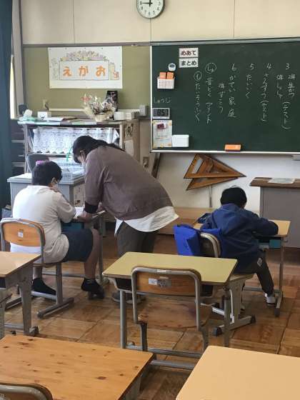 静かに話を聞く姿勢がすばらしいです。また、集中して課題に取り組んでいました。