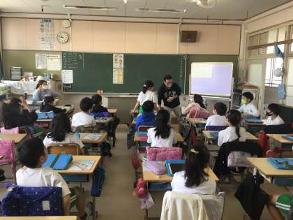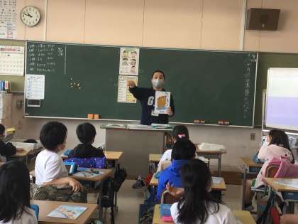 4年1組でマービン先生と英語の授業を行いました。みんな元気いっぱい楽しみました!!
