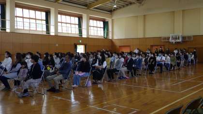 授業参観後、体育館にて行いました。たくさんの保護者が参加され、盛況に終わりました。その場で、1年生の保護者にピンクジャンバーを配りました。子どもたちが安全に登下校することができるようにご活用ください。1年間よろしくお願いします。