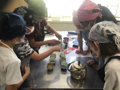 5年2組が家庭科の授業でお茶を入れて飲む体験をしました。家でもチャレンジしてほしいです。