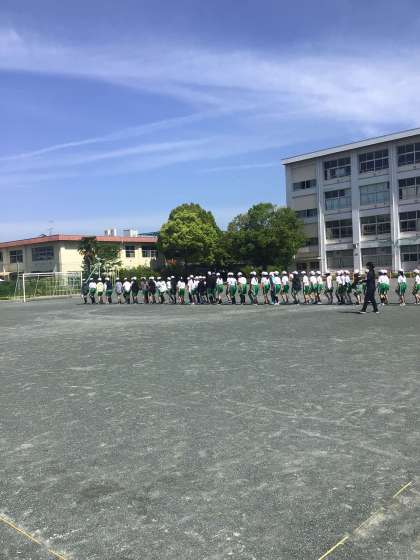 行進の練習をしました。足音がそろうと、とてもかっこいいです。