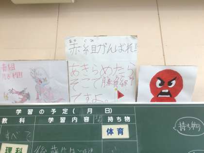 明日はいよいよ運動会です。5・6年生は、応援グッズを制作したり、黒板に思いを書いたりして、より一層気持ちを高めていました!
