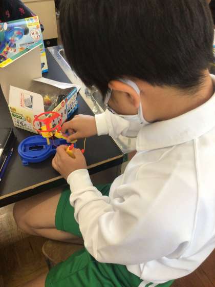 実験キットを使い、楽しく回路を組んでいます。今回の授業では、簡易検流計を使用しました。4年生では、実験器具を使う機会も増えてきます。安全に楽しく科学の力を伸ばしていきたいですね。