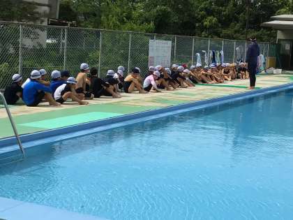 プールボランティアに見守らせながら、24日間のプールがスタート。今日は気温、水温ともにちょうどよく、子どもたちの歓声が響いていました。のべ50人のプールボランティアの方々に支えられ、安全に学習できることに感謝しています。